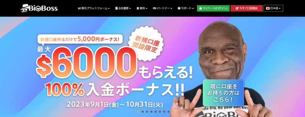 BigBossは、2013年に創立され、豪華なボーナスと独自のプログラムで高い評判を得ている海外FX業者です。