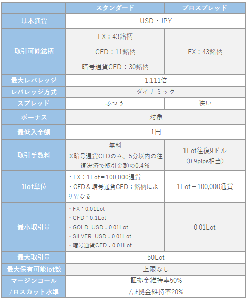 BigbossのFX口座には、「スタンダード口座」と「プロスプレッド口座」の2種類があります。