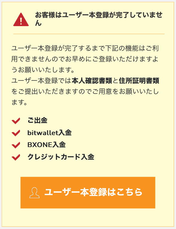 ログインすると、上のような表示がされますので、「ユーザー本登録はこちら」をクリックし、個人情報を入力してください。