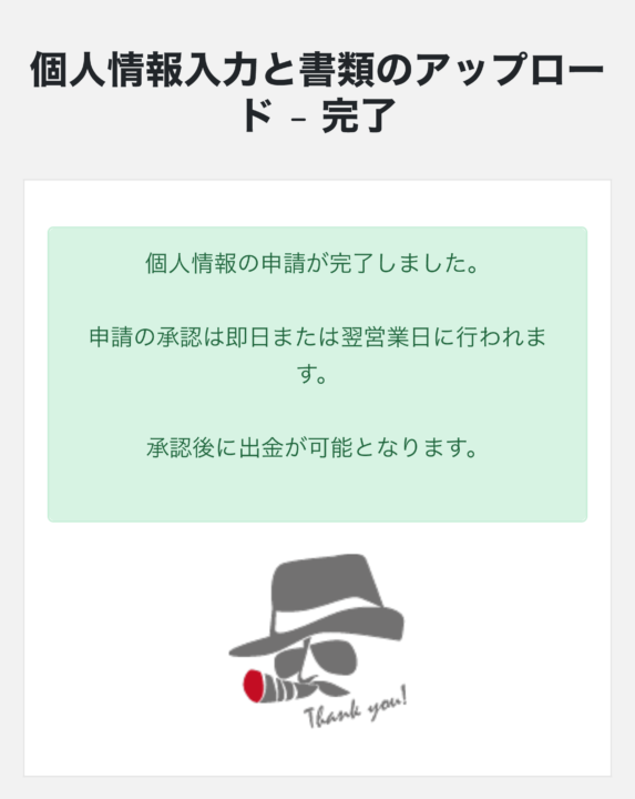 最短で即日、遅くとも翌営業日には審査結果のメールが届きますので、問題なければこれで本登録は完了です。