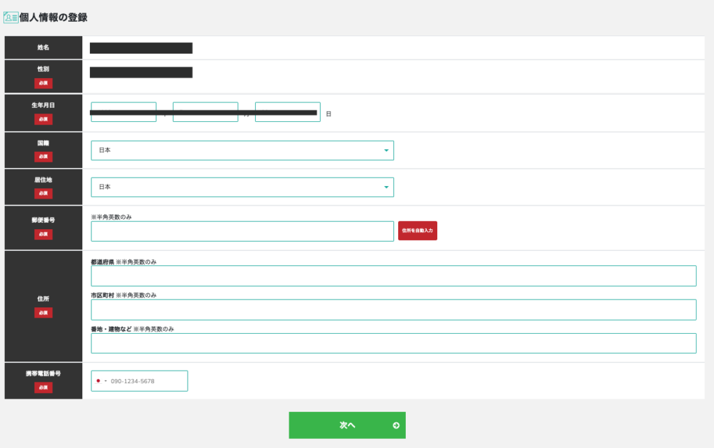 | 生年月日 | すでに入力されているので正しいか確認 |