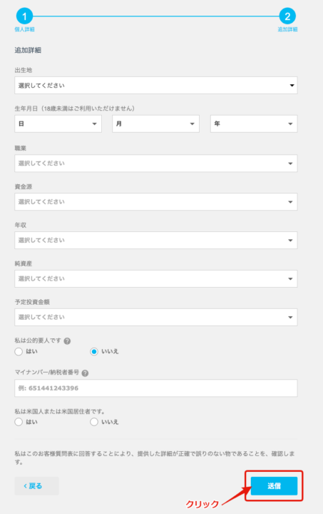 STEP① 口座開設フォームの入力