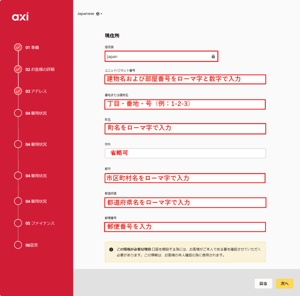 STEP5. 現住所の入力