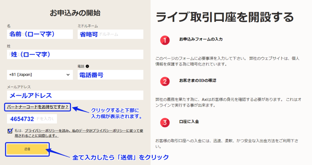 Axi口座開設はこちら